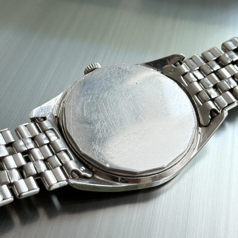 Dated 1960, it features a 34 mm stainless steel case, a black dial, and a plexiglass crystal. The watch is fitted with a Gay Frères Universal Genève bracelet, stamped with a 1960 date code, perfectly matching the watch’s production period.